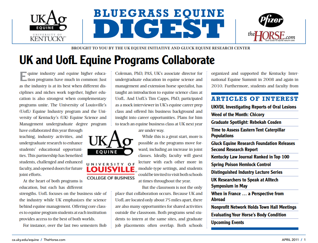 Bluegrass Equine Digest April 2011 Bluegrass Equine Digest April 2011 Breadcrumb Bluegrass Equine Digest April 2011