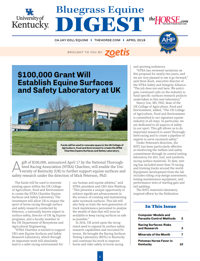Bluegrass Equine Digest April 2019 Bluegrass Equine Digest April 2019 Breadcrumb Bluegrass Equine Digest April 2019