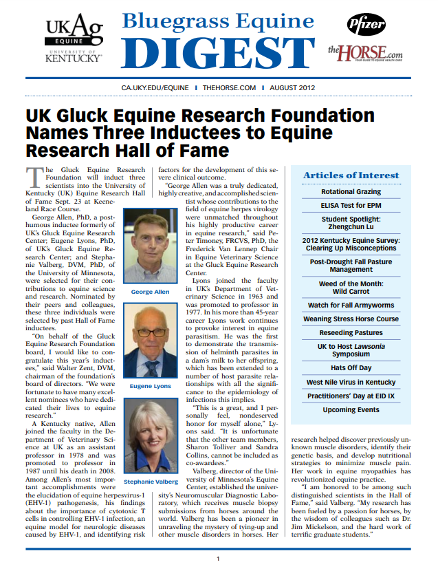Bluegrass Equine Digest August 2012 Bluegrass Equine Digest August 2012 Breadcrumb Bluegrass Equine Digest August 2012