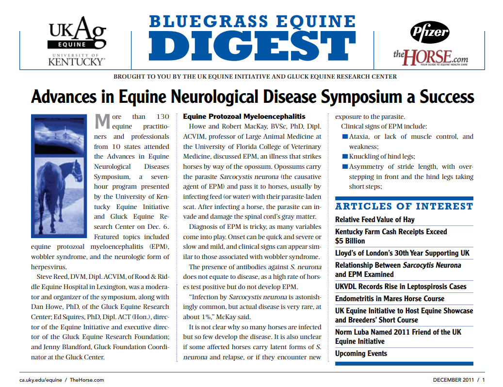 Bluegrass Equine Digest December 2011 Bluegrass Equine Digest December 2011 Breadcrumb Bluegrass Equine Digest December 2011