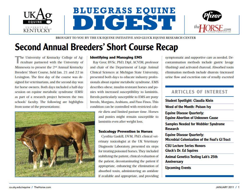 Bluegrass Equine Digest January 2011 Bluegrass Equine Digest January 2011 Breadcrumb Bluegrass Equine Digest January 2011