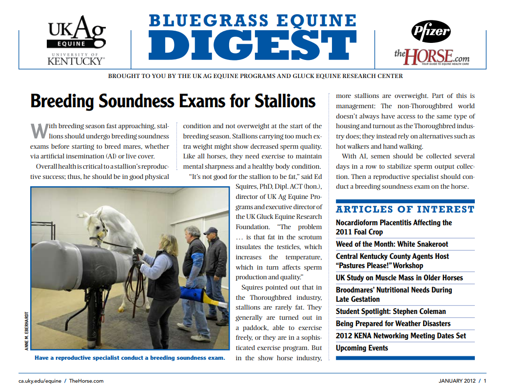 Bluegrass Equine Digest January 2012 Bluegrass Equine Digest January 2012 Breadcrumb Bluegrass Equine Digest January 2012