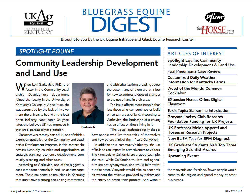 Bluegrass Equine Digest July 2010 Bluegrass Equine Digest July 2010 Breadcrumb Bluegrass Equine Digest July 2010
