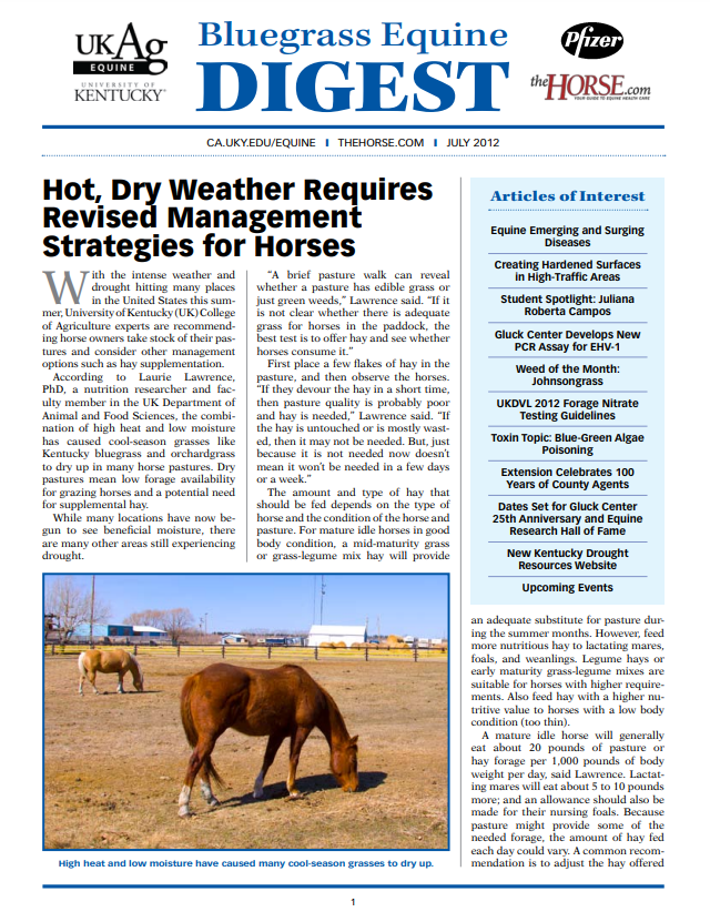 Bluegrass Equine Digest July 2012 Bluegrass Equine Digest July 2012 Breadcrumb Bluegrass Equine Digest July 2012