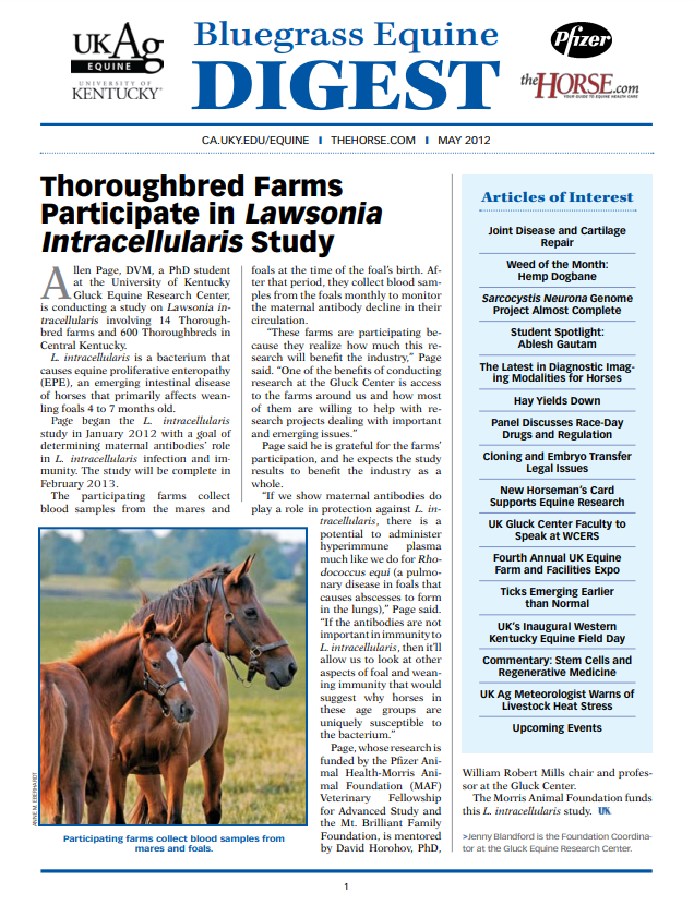 Bluegrass Equine Digest May 2012 Bluegrass Equine Digest May 2012 Breadcrumb Bluegrass Equine Digest May 2012