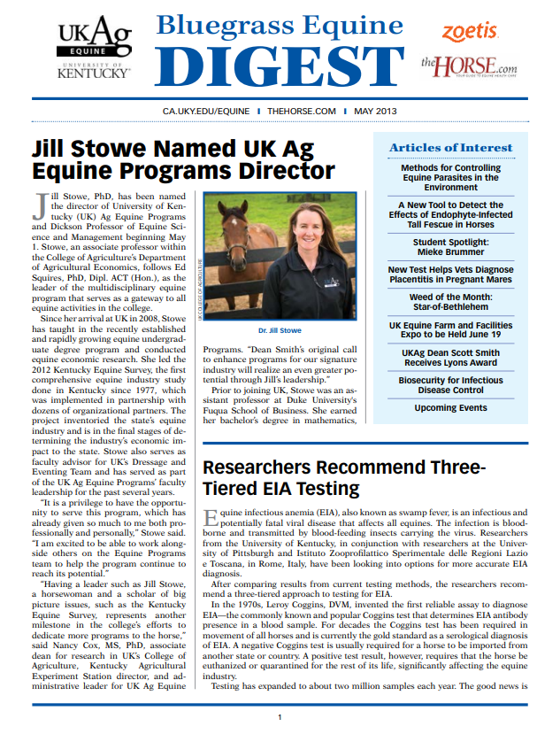 Bluegrass Equine Digest May 2013 Bluegrass Equine Digest May 2013 Breadcrumb Bluegrass Equine Digest May 2013