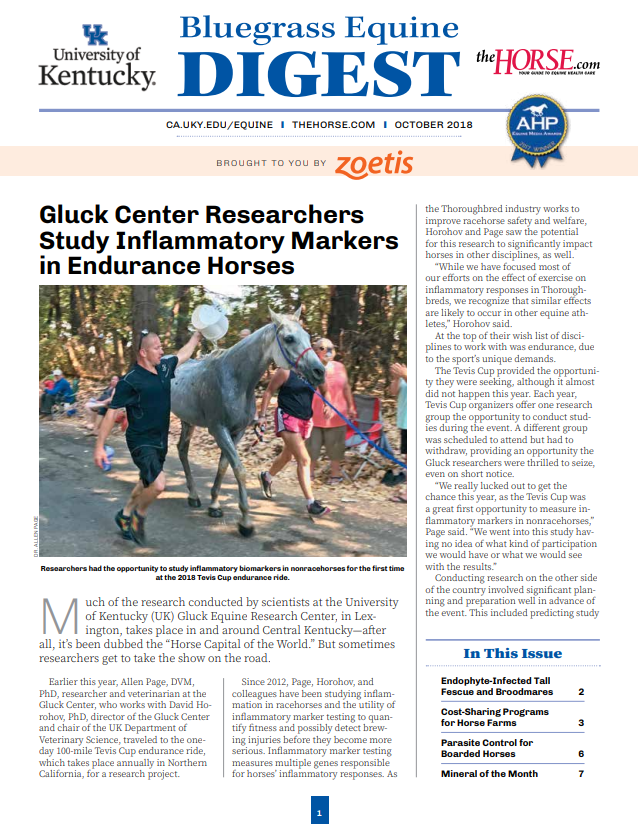 Bluegrass Equine Digest October 2018 Bluegrass Equine Digest October 2018 Breadcrumb Bluegrass Equine Digest October 2018