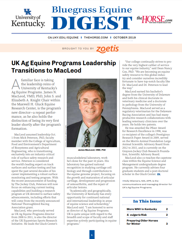 Bluegrass Equine Digest October 2019 Bluegrass Equine Digest October 2019 Breadcrumb Bluegrass Equine Digest October 2019